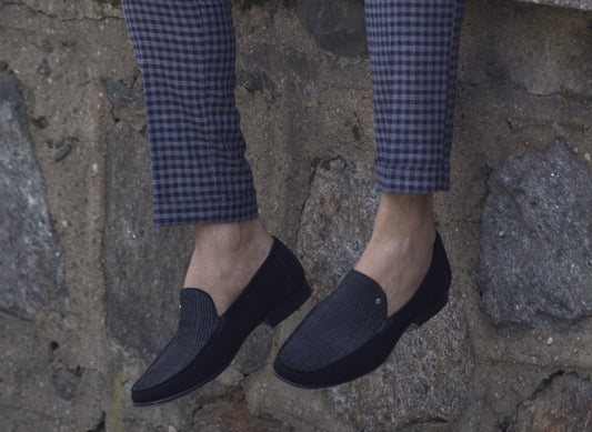 Our collection includes a variety of finely crafted items such as classic black textured slip-on loafers, handmade black guayabera shirts, and a range of linen pants in vibrant colors and patterns. Each piece reflects our dedication to quality and style.